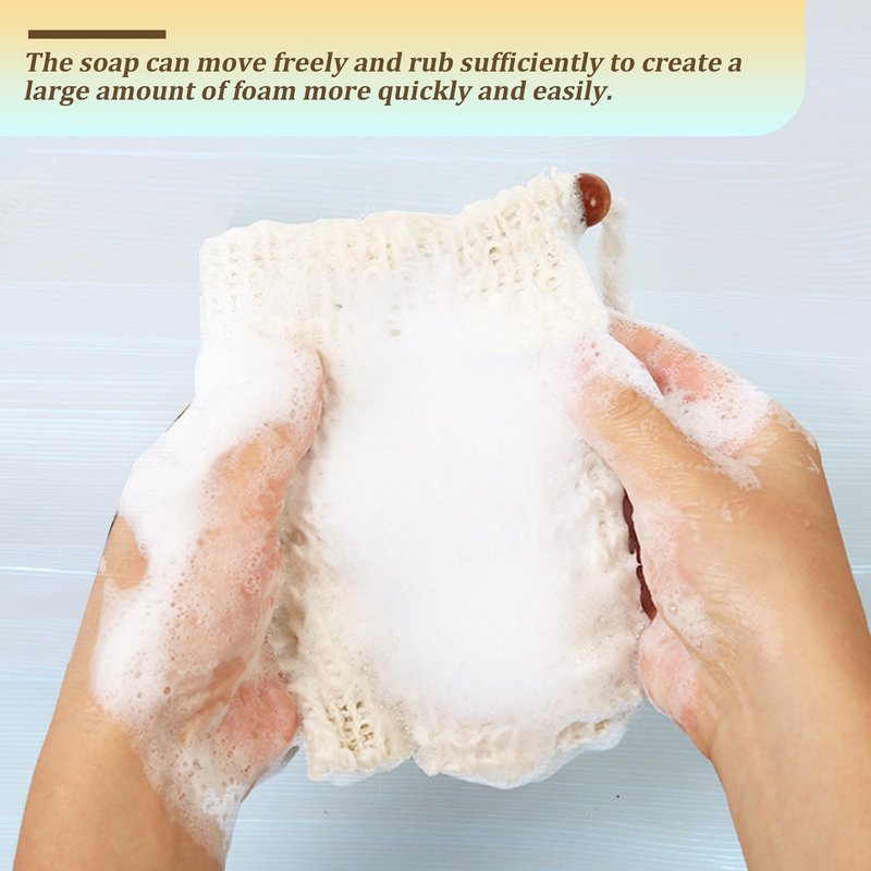Natural cotton and linen material, unique surface structure, soft and skin-friendly, light texture, gentle and effective cleaning of skin waste. It is not easy to shrink, strong stretch, and can be used repeatedly and for a long time without damaging your skin.The foam mesh is large enough to hold most soap. The soap can move freely and rub sufficiently to create a large amount of foam more quickly and easily.