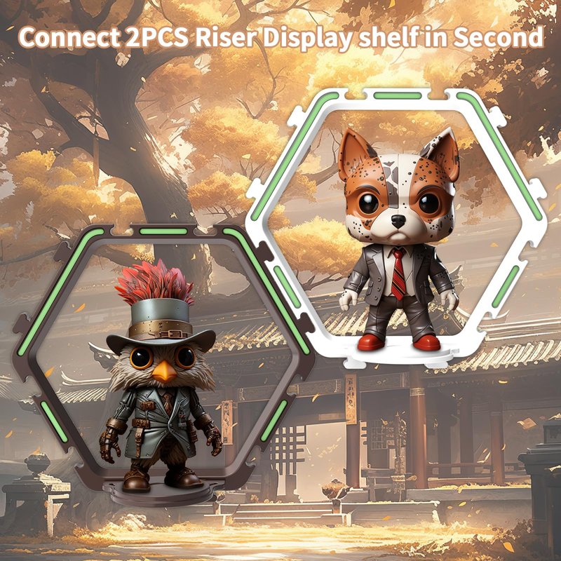 We design a warm and shiny home for your close friend POP Figures. The design was inspired by honeycombs, and we also wanted them to display well at night, so we added fluorescent material around the edges of the hexagon.Our Riser Display Shelf, giving you a special visual experience, is indeed as you need.