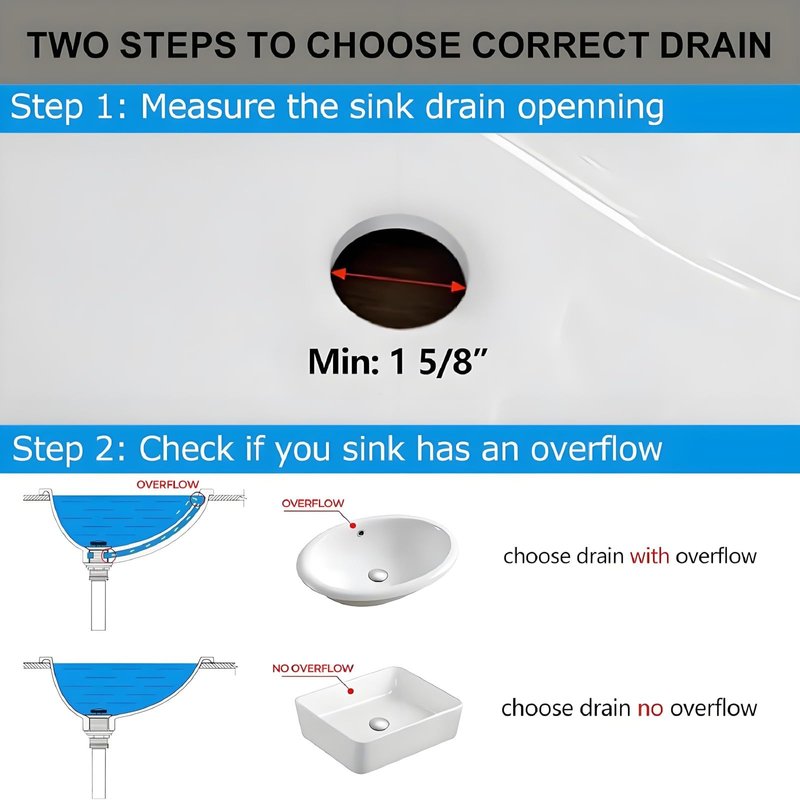 - 【1 5/8" DRAIN OPENING】 - This Pop Up Drain fit Sink drain opening 1 5/8",please check you sink hole size before purchasing.