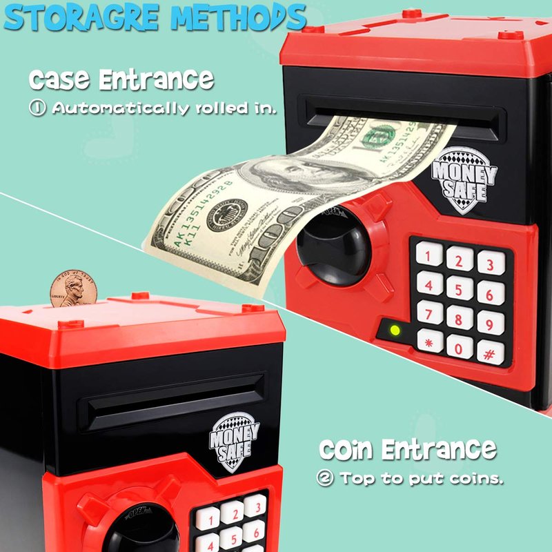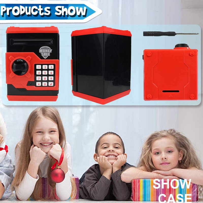 - 【Money box material】 - The "MONEY SAFE" made of high quality evironmental ABS plastic,sturdy and not break easily.Safe simulation design. Great gift for children kids.
