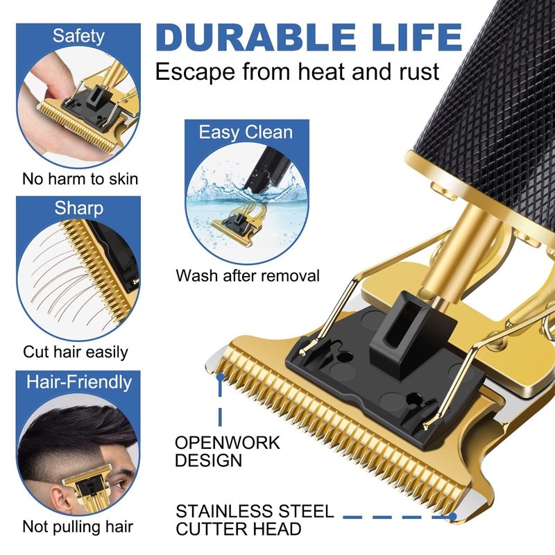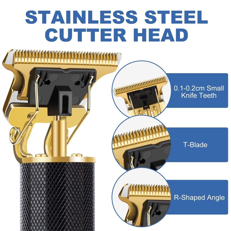 - 【T-Style Zero-Gap Cutter Head】Adorned with a precision-crafted T-shaped stainless steel cutter head, 4cm wide, this clipper seamlessly blends artistry with function. Its razor-sharp blades glide through hair effortlessly, ensuring a smooth cut without any skin irritation. A protective cover shields the cutter head from wear, allowing for hassle-free cleaning under running water.