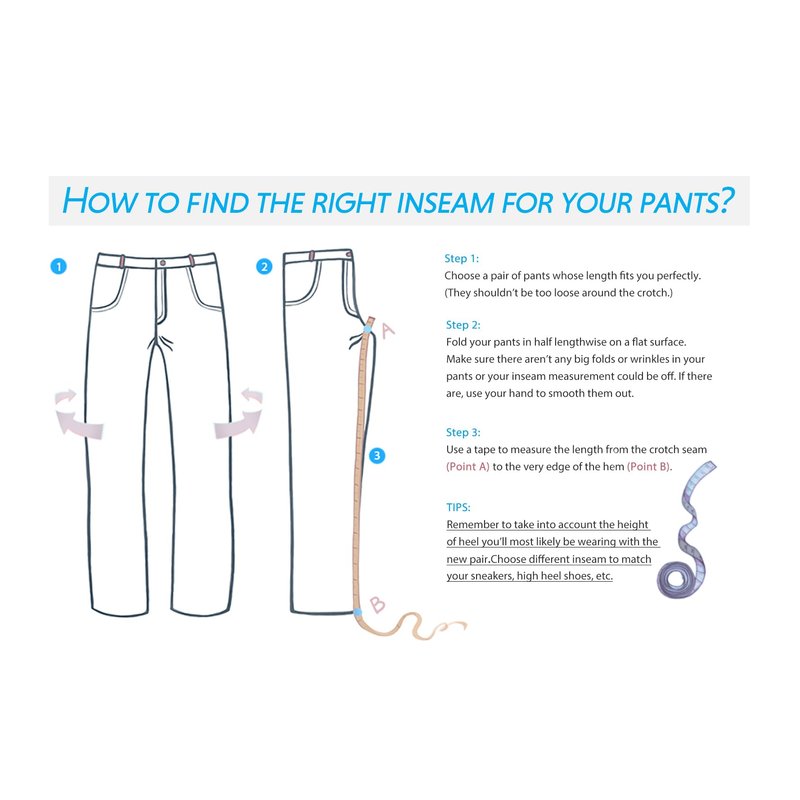 - Short (25" inseam) fits women under 5'. Petite (27"/29" inseam) fits women 5'-5'4". Regular (31" inseam) fits women 5'5"-5'7". Long (33" inseam) fits women 5'7"-5'9". Tall (35" inseam) fits women 5'9"-6'. Extra Tall (37" inseam) fits women 6' and above. Note: This inseam chart is for reference only. To ensure the best personal fit, refer to our "How to Measure the Inseam" section in the product description to find your ideal inseam length