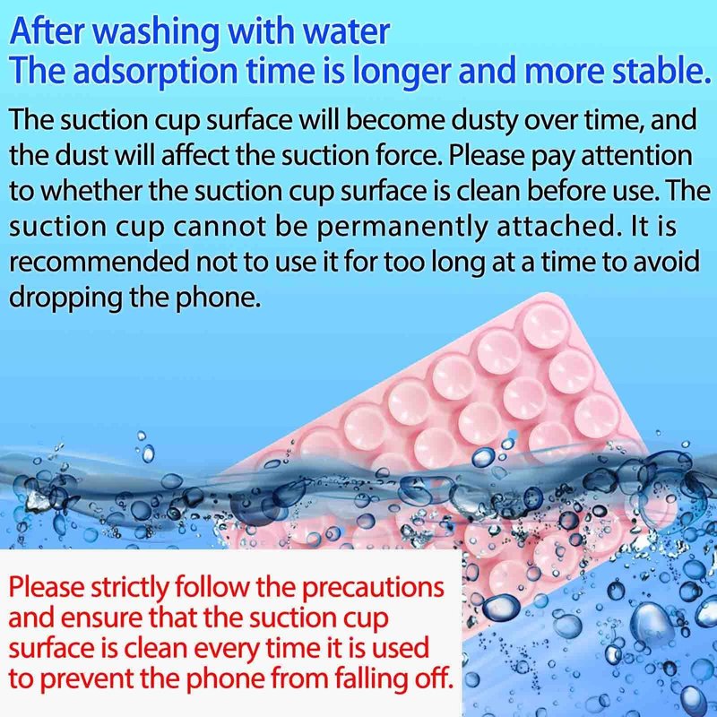 - Strong Adsorption: The inspiration for the silicone suction cup phone holder comes from the adhesion of the octopus. With 40 independent suction cups on both sides, it provides stronger and more stable suction, so you don't have to worry about your phone falling during use. Unlike the single-sided suction cups on the market that are attached to the phone case and cannot be removed, our double-sided suction cups can be removed and used at any time, which is more convenient.