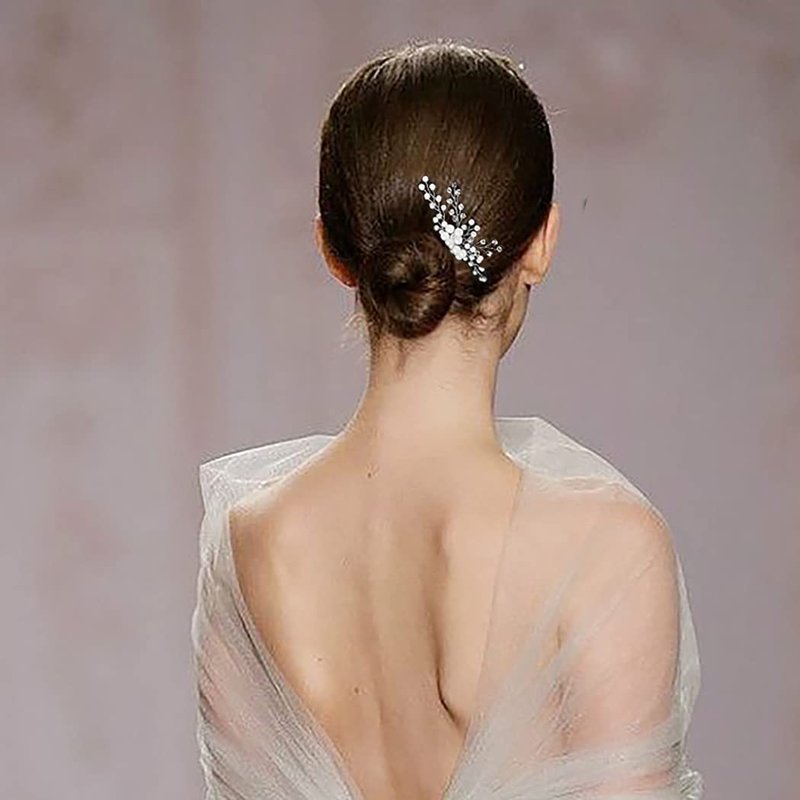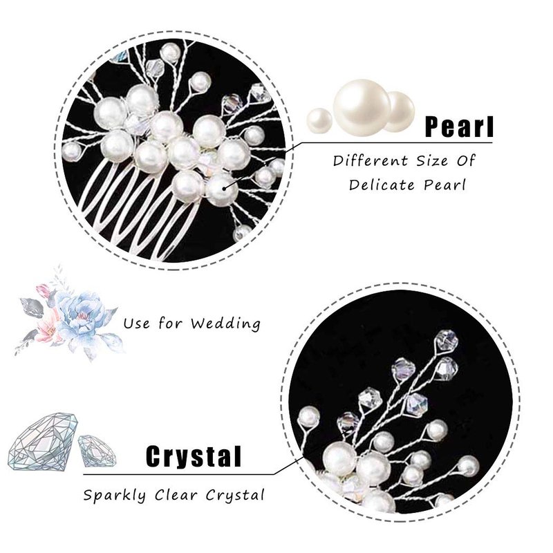 Yokawe Bridal Wedding Hair Comb Silver Crystal Bride Side Combs Pearl Hair Accessories for Women and Girls