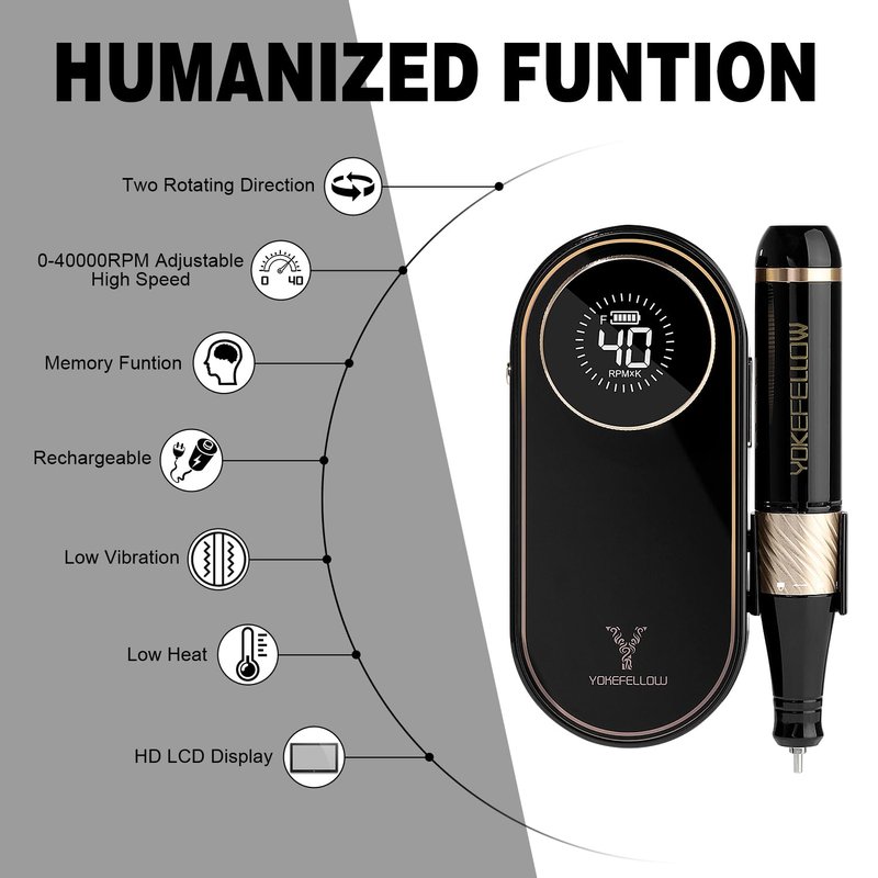 YOKE FELLOW Electric Nail File - Nail Drill Machine for Acrylic Nail Kit with Nail Dust Brush for Dip Powder Manicure Pedicure 40000RPM Rechargeable Nail Drill Gift Set for Women