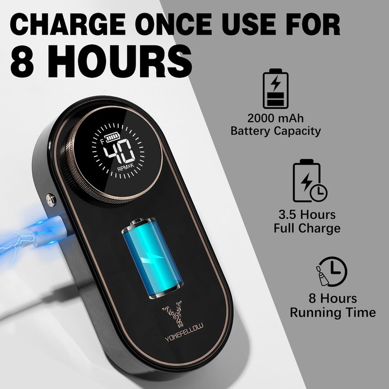 - [High Capacity Battery]: Bulid in 2000mAh battery capacity which it is need only 3.5 hours fully charged for running up to 8 hours. Comes with an upgrade USB interface, connect with any USB socket, such as laptop, AC adapter and even your car charger.