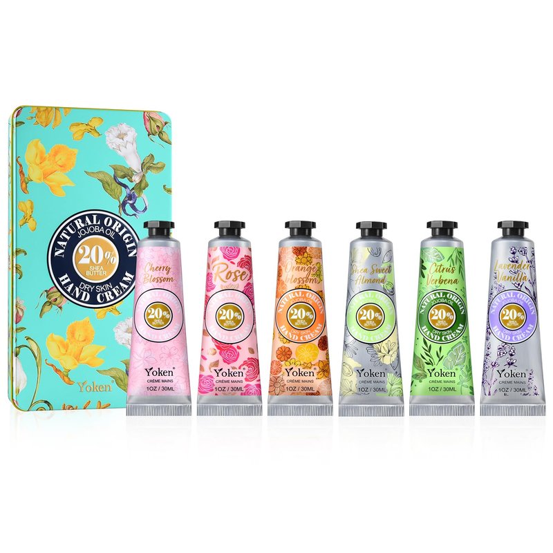 Yoken 20% Shea Butter Hand Cream Gift Set, Instant Moisturizing Hand Cream for Women Dry Hands with Delicate Tin, Floral-Scented Hand Lotion 6 x 1 OZ