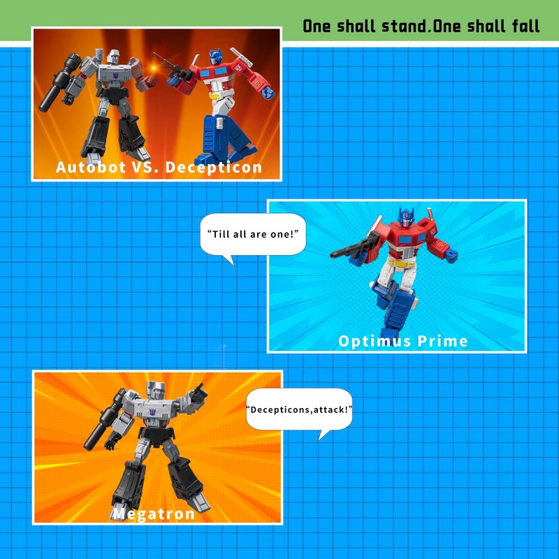 - đOFFICIAL LICENSED TRANSFORMERS G1 ACTION FIGURES - Crafted with precision and care,these collectible Transformers action figures showcases Optimus Prime and Megatron in their iconic robot form,each coming with 2 pairs of interchangeable flexible hands and 1 weaponry(ion blaster,rail cannon).Kids can imagine mighty adventures from Autobot and Decepticon squads!