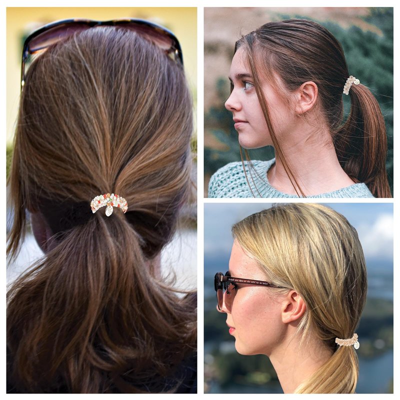 - Fashion Mixmatch: Set of 5, Made of pearl & rhinestones with great quality handmade rubber that are able to wear and wash great time after time; The Scrunchies surface of this hair band is inlaid with rhinestones; They are stretchy, soft, comfortable and best of all, durable; The scrunchies are carefully sewn and made to last