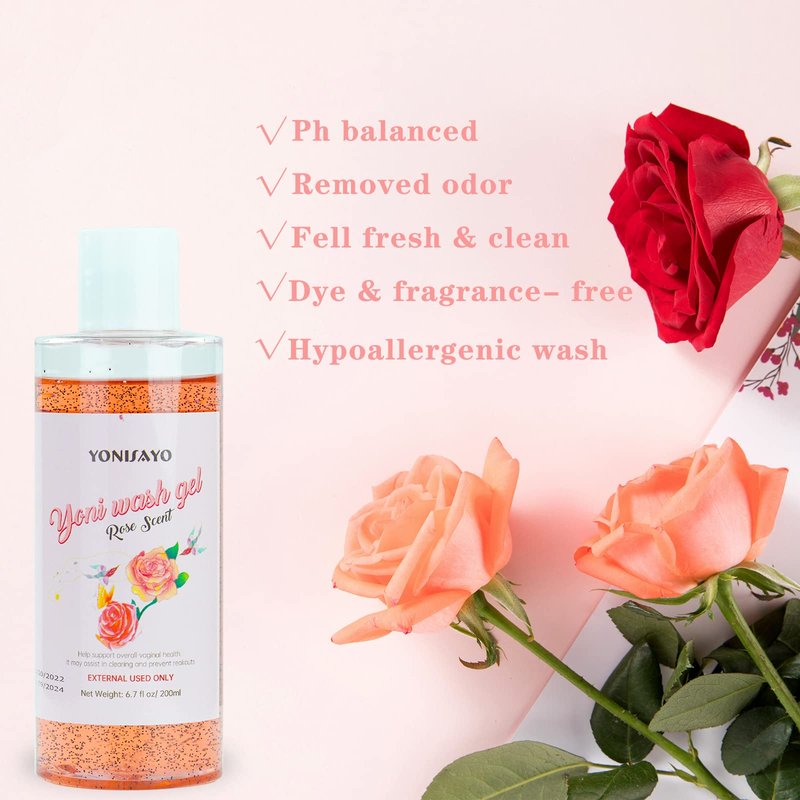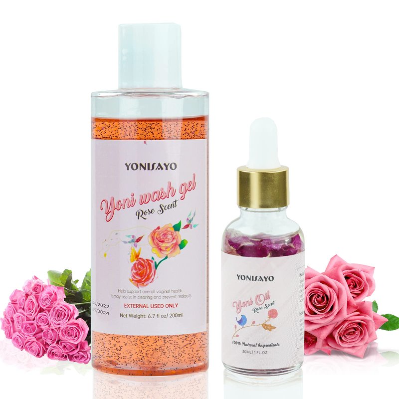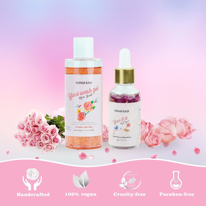 Yoni Wash for Women & Yoni Essential Oil Set, Feminine Wash with Cleaning Factor, Remove Odor, pH Balance for Women and Vaginial Deodorants, 6.7 fl.oz Intimate Wash, Natural Feminine Oil 30ml, Rose