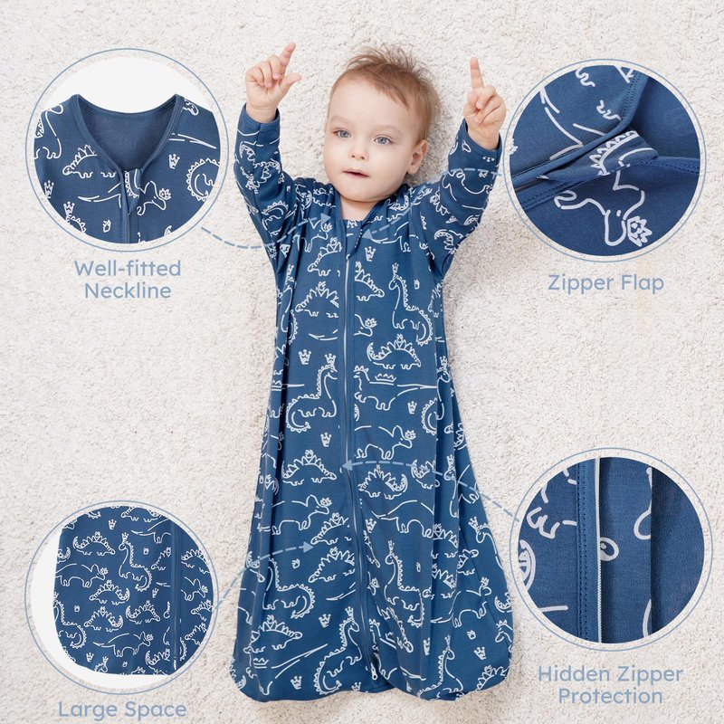 Our long sleeve sleep sack is made of 100% cotton to guarantee the utmost comfort and the protection of toddler's sensitive skin.very soft,comfortable!