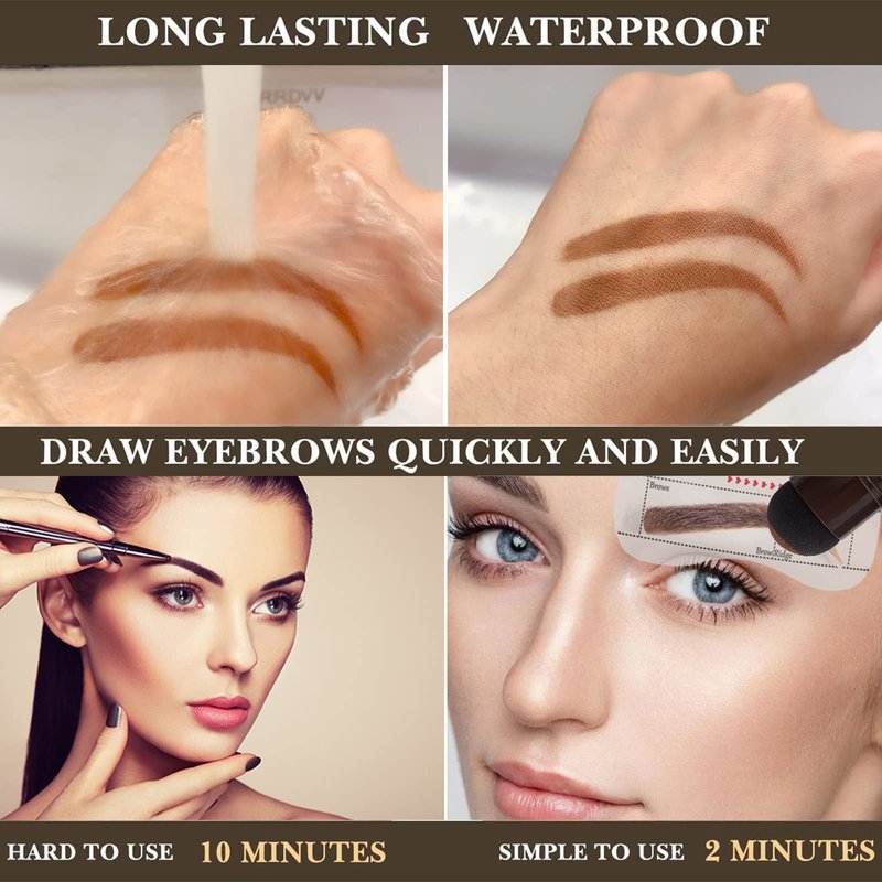 - [WATERPROOF AND SMUDGE-PROOF] Professional Eye Brow Stamping Kit Waterproof,don’t worry about that your brows melting or washing away. Our Eyebrow Stamp keeps your brows on all day long.
