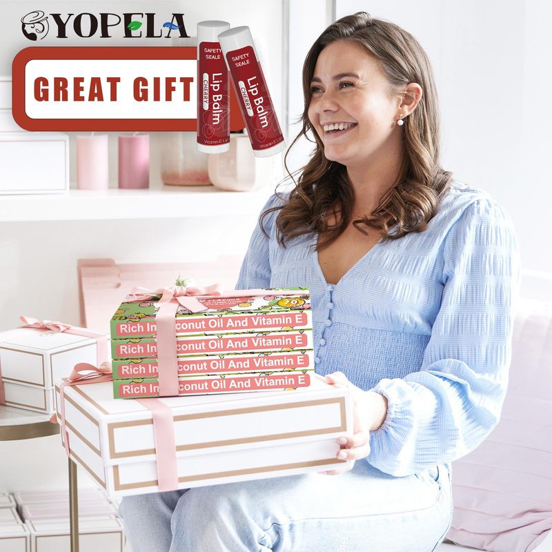 Yopela 10 Pack Natural Lip Balm Bulk with Vitamin E and Coconut Oil Valentine's Day best choice - Moisturizing, Soothing, and Repairing Dry and Chapped Lips - 10 Flavors - Non-GMO