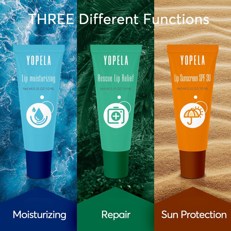 Yopela Lip Sunscreen Moisturizing and Repair Package Lip Care Set- SPF 30 - Summer Long Lasting Moisturized, Smooth and Repaired Lips - 3 Flavors (Moisturizing, Repairing, and SPF)