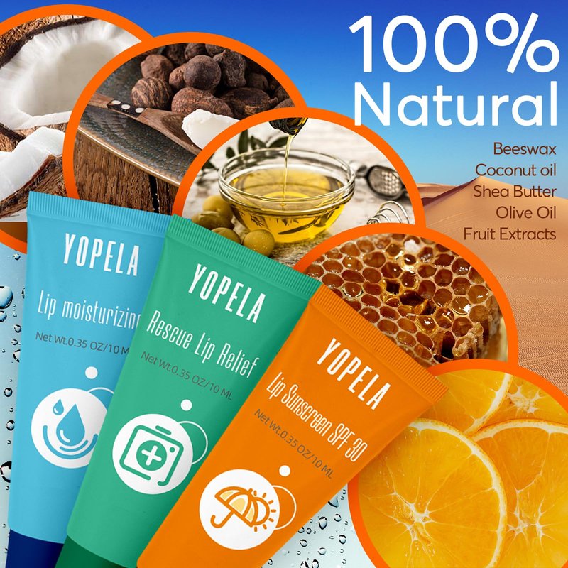 Yopela Lip Balm 3-Pack is the ultimate lip care solution for anyone looking to keep their lips healthy, moisturized, and protected. < /b >< br >This pack includes nine tubes of lip balm, with : sun protection, moisturizing, and repairing. With this three-in-one combination, you can get all the benefits you need for healthy, beautiful lips in one pack.< br > The sun protection formula of this lip balm includes SPF30, which helps protect your lips from the sun's harmful UV rays. Whether you're planning to spend the day at the beach or go for a walk on a sunny day, this lip balm offers the necessary protection to keep your lips safe while you enjoy the outdoors.< br > The moisturizing formula of this lip balm keeps your lips intensely moisturized, soft, and smooth. Say goodbye to dry, cracked, or chapped lips. This lip balm is perfect for anyone looking to keep their lips hydrated and healthy.< br > The repairing formula of the lip balm is designed to help rejuvenate your lips' health and repair lip tissue. This formula is perfect for those struggling with damaged and delicate lips or those looking to add some extra protection to their lips' natural defenses.< br > All nine tubes of this lip balm are identical, so you can use them interchangeably. The size of each tube is 0.35oz/10ml, making it easy to carry in your purse, pocket, or beach bag. With nine tubes in one pack, you'll have plenty to last you throughout the season.< br > In conclusion, Yopela Lip Balm 9-Pack is a must-have for anyone looking for excellent lip care and protection. This pack offers great value for money and ensures that you have all the lip care solutions you need in one convenient package.