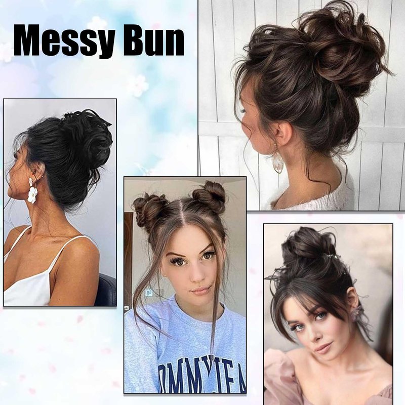 messy bun hair piece for women perfect for daily use, parties, dinners, family gatherings, travels, graduations, formal meetings, Halloween, Christmas, costume cosplay and more.