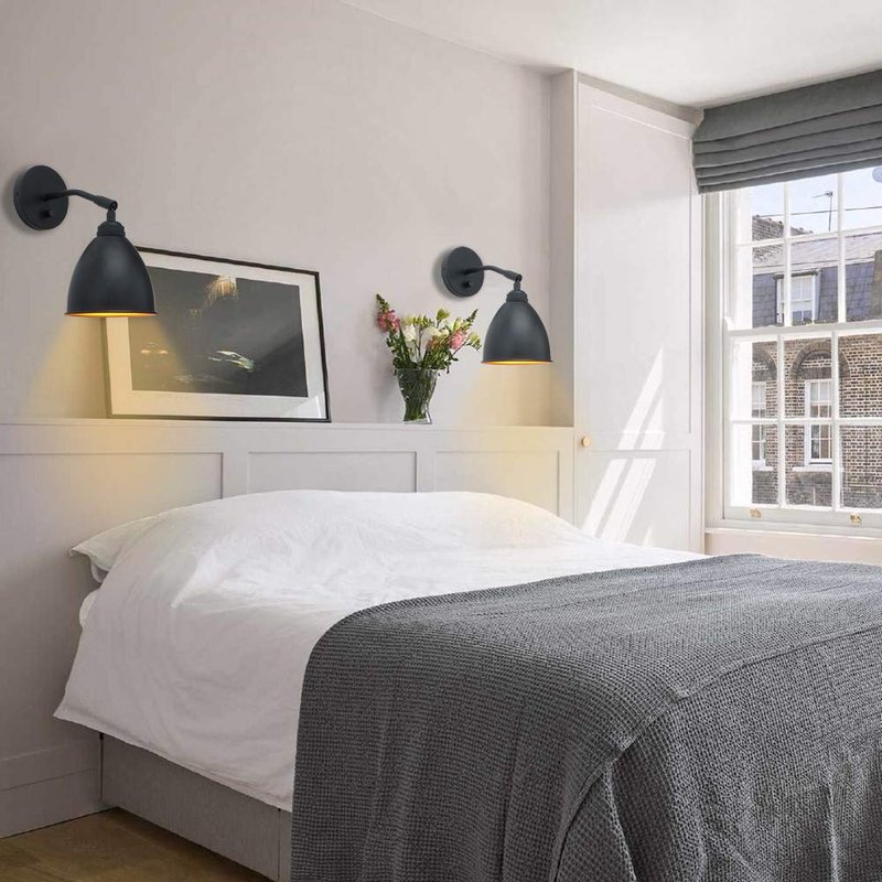 Yosoan Vintage Wall Sconce Bookcase Light, 1-Light Dimmable On Off Switch Hardwired Industrial Mount Metal Fixture Lighting Lamp with 6.1" Oval Black Metal Shade in-Build Gold Reading Light for Bed