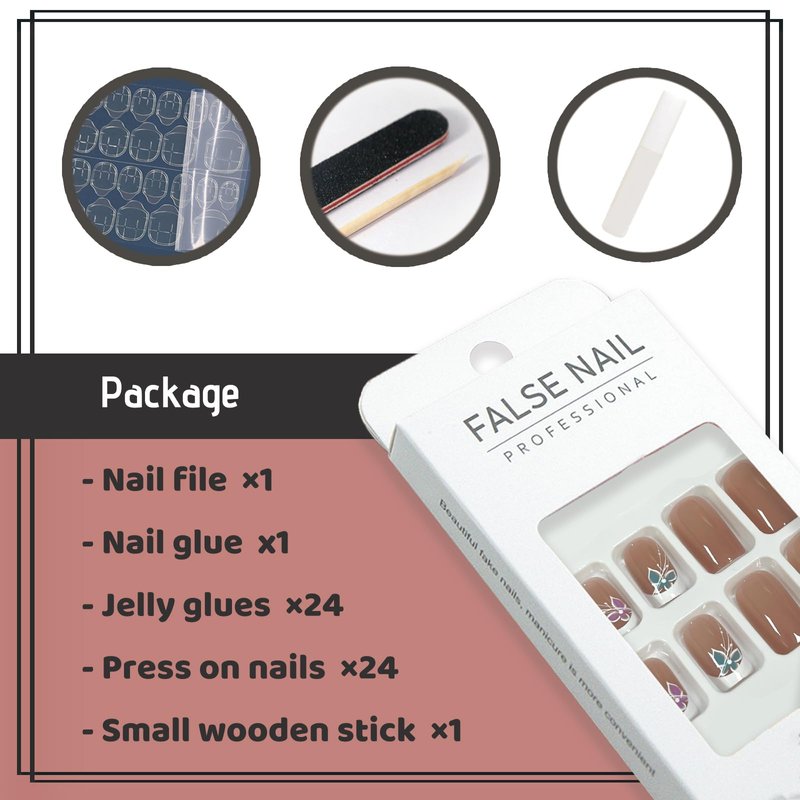 - 【Package Contains】:A box contains 24 fake nails, a nail file and 24 jelly glues, the fake nails are divided into 12 different sizes, it is convenient for you to choose the fake nails that suit your nail.