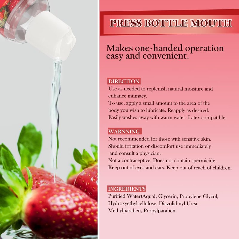 - ✔Irresistible Strawberry Taste: If you want to add some flavour to your fun-filled lubricant, try this strawberry flavoured lubricant. This high-end ingredient gives edible lubricant a silky smooth feel and fresh strawberry flavour that makes it taste just like the real thing