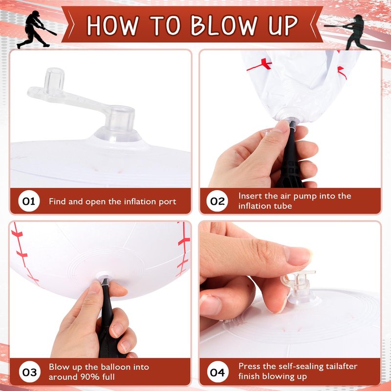 - Easy to Use: The inflatable baseball are easy to blow up with a pump or air compressor, and they can be easily deflated when not in use, saving space for storage.