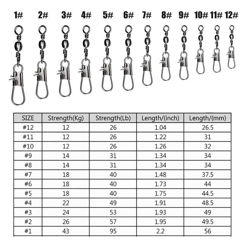 - HIGH STRENGTH: YOTO Ball Bearing Fishing snap swivels made of high quality copper, snap and ring made with enhanced stainless steel. Full body coated with black nickel coating for incredible strength and durability.