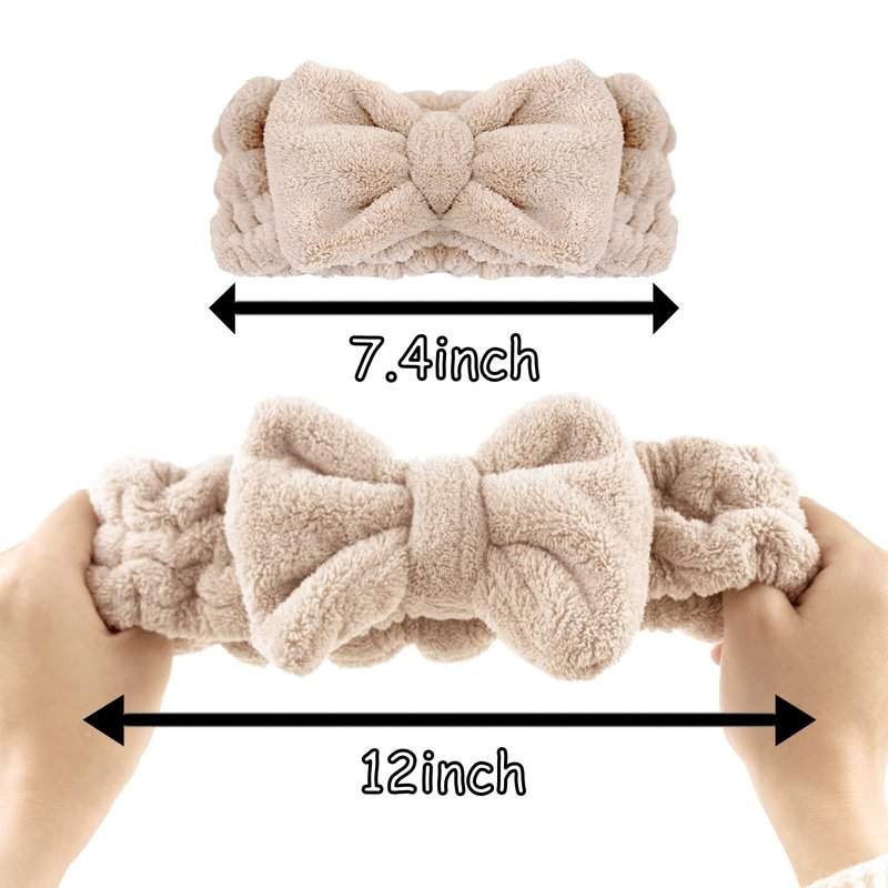 YOTOZU Makeup Headband Soft Coral Fleece Headbands Ultra Absorbent Bow Hair Wrap Band Makeup Face Spa Wash Shower Hair Band,2pcs (Light Brown+Pink)