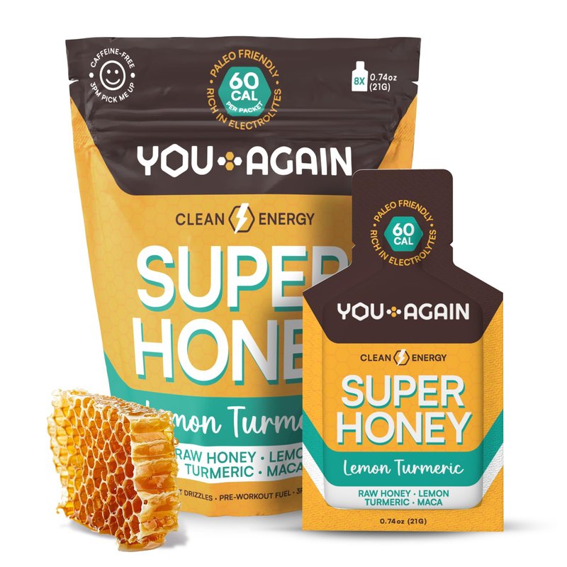 - Healthy Lifestyle Fuel: You Again Raw Honey is a quick and clean energy source of 17g easy-to-digest simple carbs for your active life. It's Paleo, Gluten-Free, Grain-Free, and Caffeine-Free with four delicious flavors (Chocolate, Wild Spiced, Lemon Turmeric, Honey & Salt) to keep you fueled during workouts, without an upset stomach.