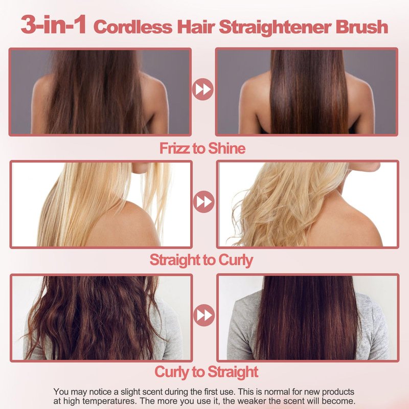 - 【Stay Effortlessly Styled Anywhere】This ultra-light, hair straightener brush keeps you perfectly styled on the go. Whether you’re traveling or busy at home, this cordless brush is your ideal companion for instant, hassle-free beauty.