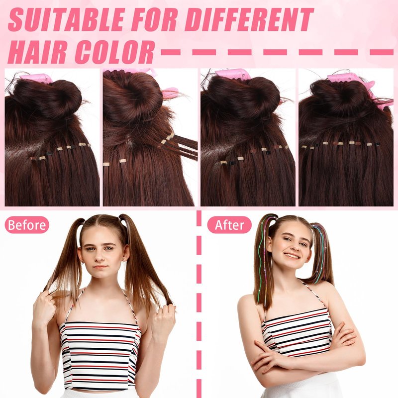 - 【Suitable for many occasions】These hair extension accessories can be widely used in various occasions, such as music festivals, school dances, parties, holidays, holiday dress-ups, Halloween and Christmas, cosplay, birthday parties, theme parties, daily hairdressing, etc. The colorful metal hair adds amazing colors and brilliance to the hair, guaranteeing your turning rate at the party, and the hair metal wire can also decorate your hats, bags, balloons, gift packaging, etc.