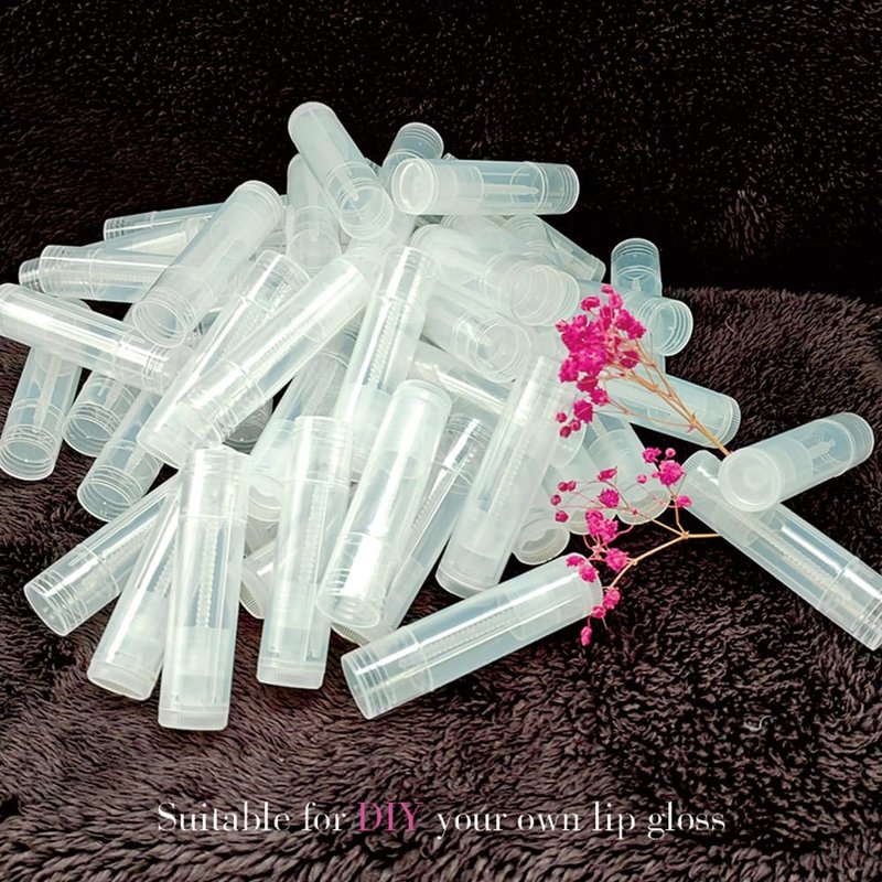YouFuyi 50 Lip Balm Container Kit with Filling Tray and Spatula, Round Tube Refillable Empty Tube 3 Colors, 0.15 oz, BPA Free, for DIY Homemade Lipstick Lipstick (50 translucent kits,)