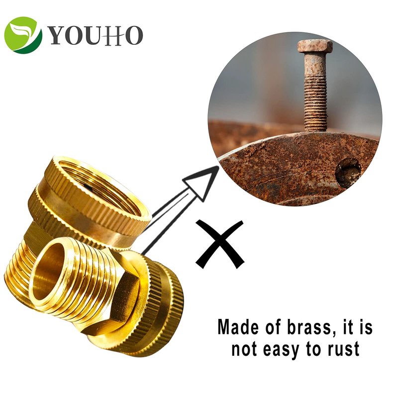 YOUHO Garden Hose Adapter Brass 3/4” GHT Female x 1/2” NPT Male Connector, GHT to NPT Adapter Brass Fitting, Garden Hose to Pipe Fittings Connect, Garden Pipe Joint Extension Repair Fitting