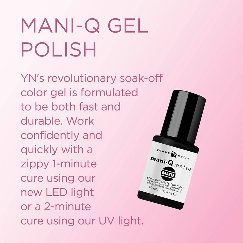 Young Nails Mani-Q Gel Polish, Color Gel Nail Polish for Natural or Artificial Nails, Cure with LED or UV Light, Soak Off Gel Polish 0.34 fl oz.