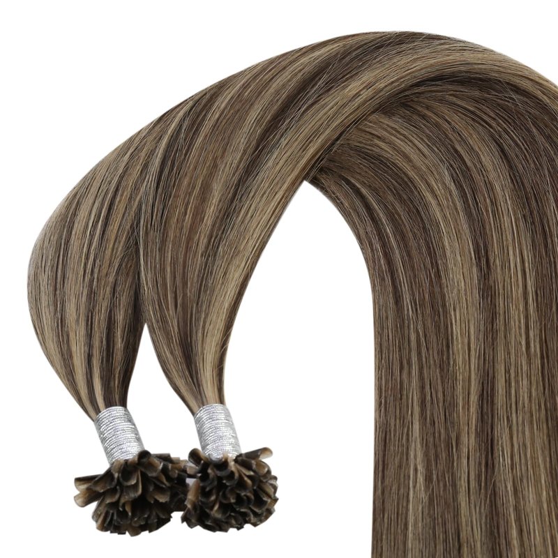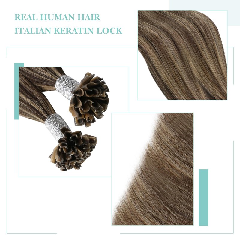 YoungSee Highlight U Tips Hair Extensions Real Hair Extensions Brown with Blonde U Tip Real Hair Extensions Human Hair Brown Keratin Hair Extensions Human Hair Brown UTips Hair Extension 18In 1G/S 50G