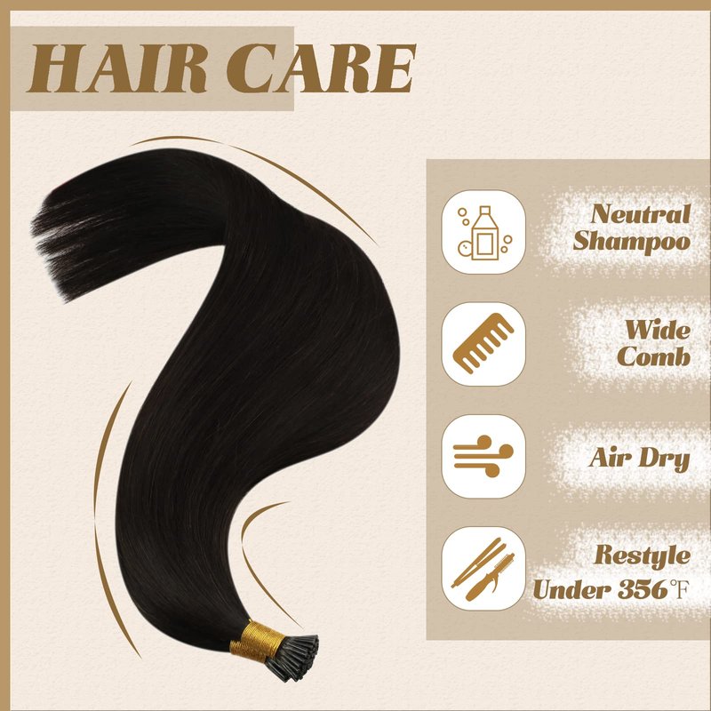 - 【I Tip Hair Extensions Brown】Made of real human hair, smooth and natural, there will be slightly wavy after washing, but it's normal and will blend naturally with your hair after drying. Can be restyled under 356℉, dyed to darker color, cannot be bleached to lighter color.