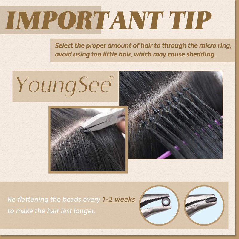 - 【Itip Extensions Human Hair】Cold fusion hair extensions, recommend to use with 5mm*3mm*3mm micro ring (including silicone). No heating is required, install firmly, harmless to hair and scalp, very covert.
