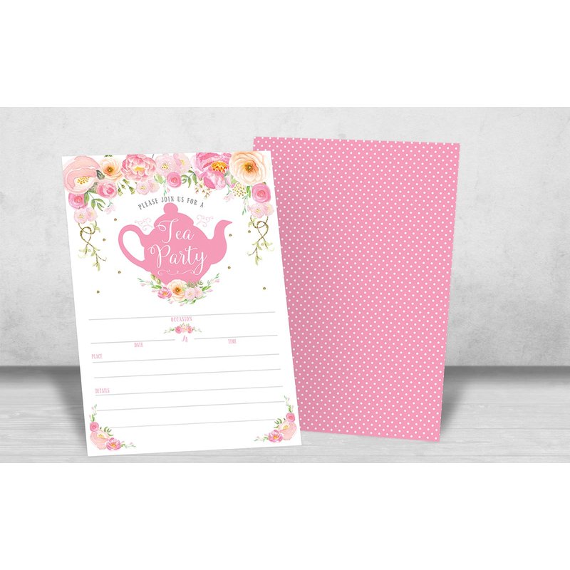 Handwrite your event details in the spaces provided, and invite your guests with these premium fill in Tea Party invitations perfect for any event. Great for Birthdays, Baby Showers, Wedding Rehearsal Dinners, Bridal Showers, Engagement, Birthday, Bachelorette Party, Baby Shower, Reception, Anniversary, Housewarming, Graduation, Sweet 16, and more! Professionally printed on premium heavy weight cardstock and designed and printed exclusively by Your Main Event Prints in the USA.