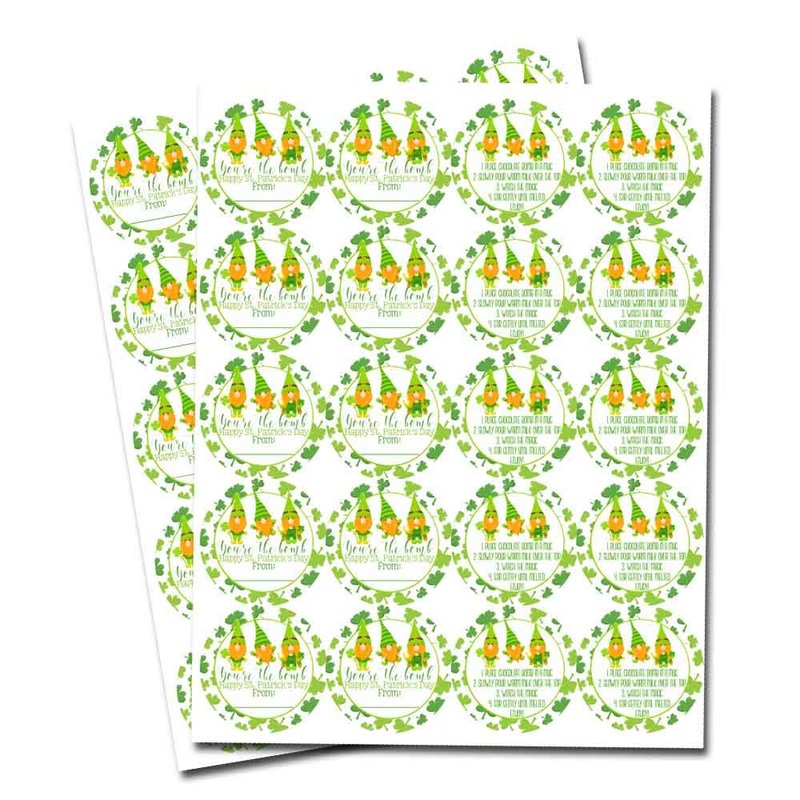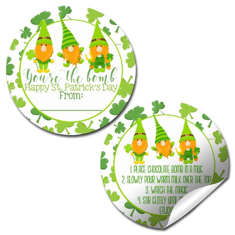 - Cocoa Bomb Overload: Hot cocoa bombs are all the rage! Giving some out as Saint Patrick’s Day gifts and want your packaging to stand out? Designed by a talented mom, these fun stickers feature a cute message on 1 sticker, with a 2nd coordinating sticker (containing detailed instructions) that is meant to go on the back of the package. These are perfect for making your hot chocolate bomb gift packs extra special for your friends & loved ones! Amanda Creation. Original design by Amanda Creation