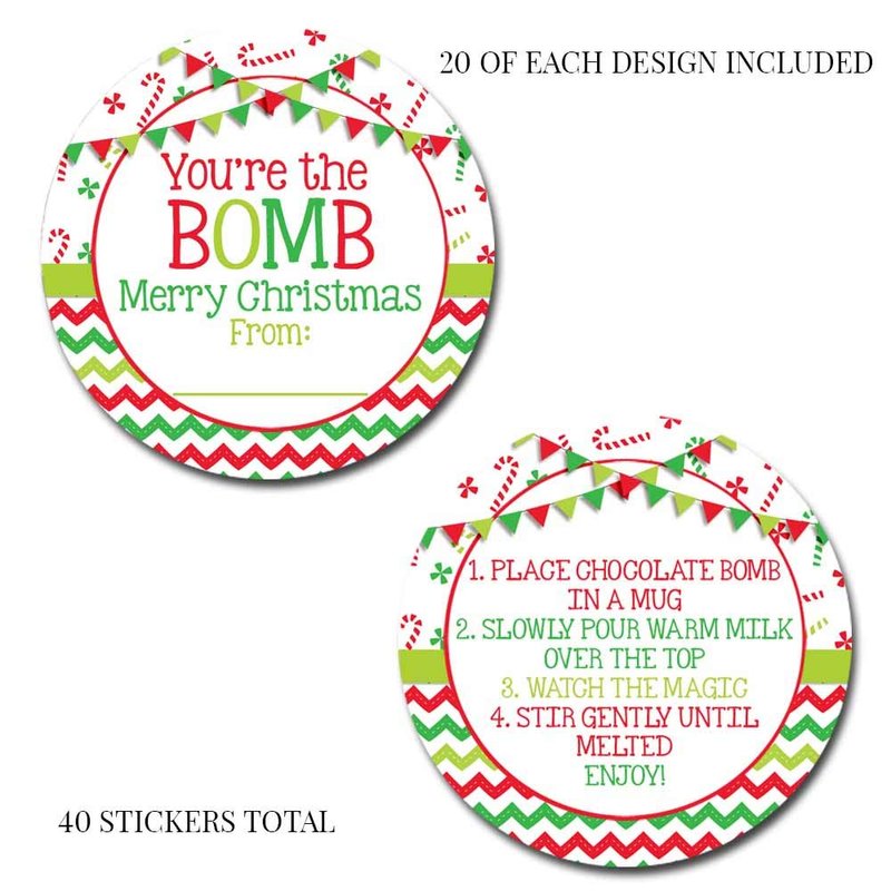 You're The Bomb Merry Christmas Themed Hot Cocoa Bomb Packaging Sticker Labels, Total of 40 2" Circle Stickers (20 Sets of 2) by AmandaCreation