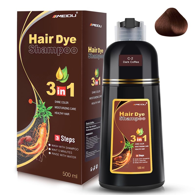 YOURTONE MEIDU Dark Brown Hair Dye Shampoo Instant Hair Color Shampoo - Hair Dye Shampoo 3 In 1 For Gray Hair Coverage Herbal Ingredients For Women & Men 500ml