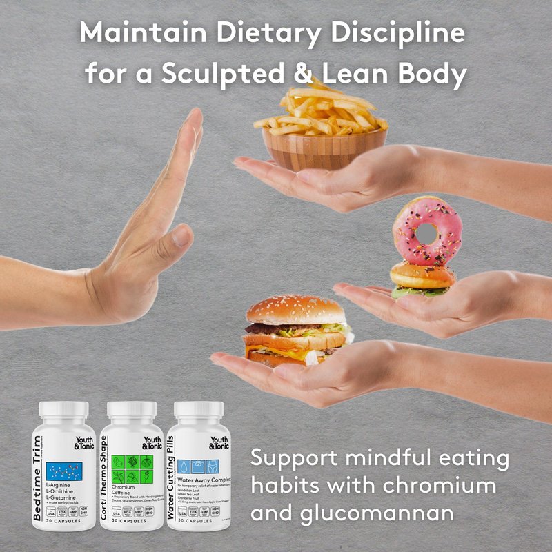 Youth & Tonic Shred Sculpt Lean 3 x Diet Pills w Water Weight Away & Cortithermo Shape & Bedtime Trim as Support for Metabolism Energy Cravings Water Retention Loss & Belly Bloating for Women & Men