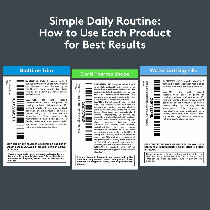 • [ How to use ]: Water Weight Away - 1 capsule taken 1 to 2 times daily preferably with meals I Cortithermo - 1 capsule taken 1 to 2 times daily preferably with meals. For best results, take 1 pill in the morning and / or 1 pill in the early afternoon I Bedtime Trim - 1 pill with 8 ounces of water on an empty stomach at bedtime. For best results, avoid eating 2 hours before and after use