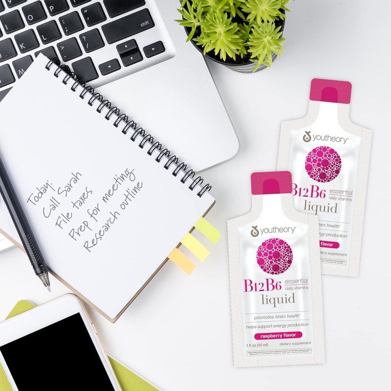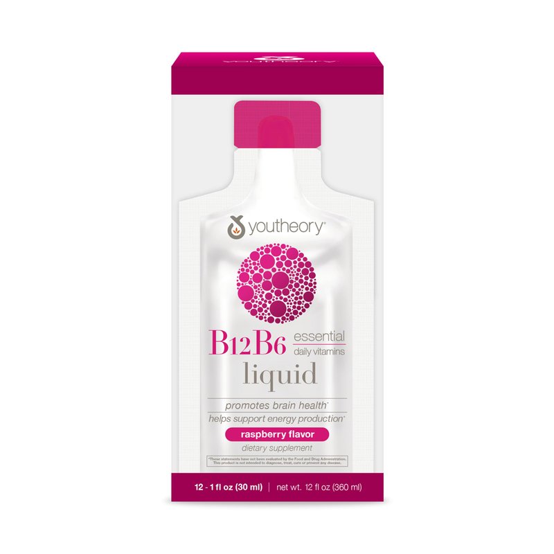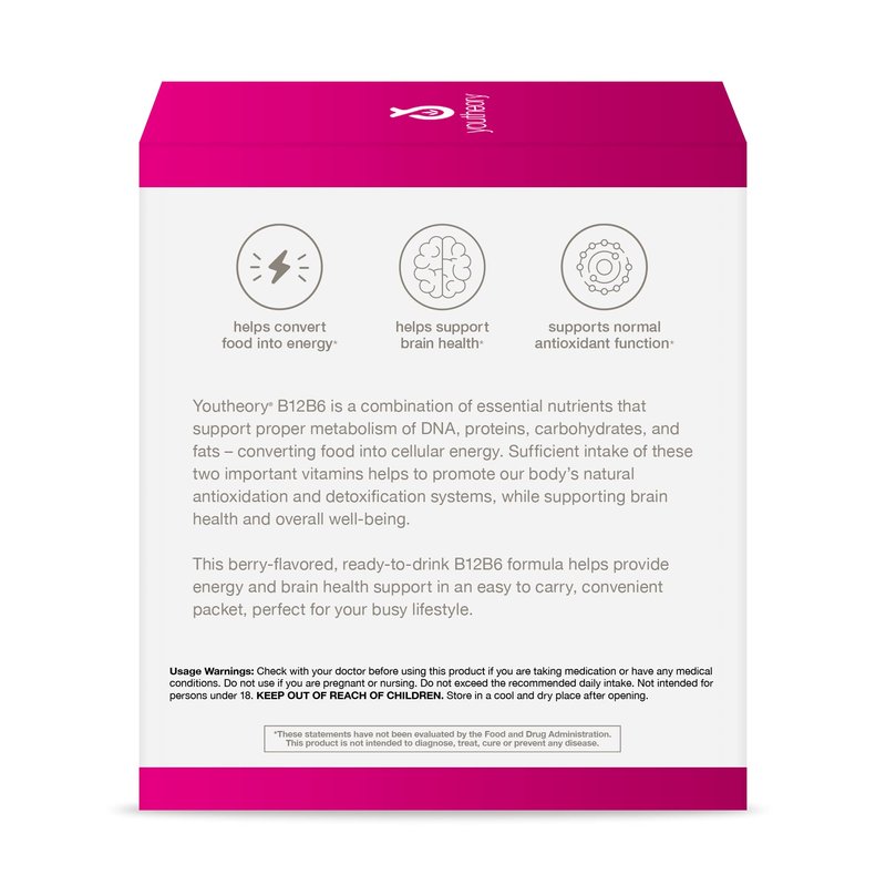 Youtheory B12B6 Liquid - Vegan Vitamin B6 & Vitamin B12 - Offers Brain Health, Energy & Immunity Support* - Dairy, Soy & Gluten Free - 1 oz (12 Single-Serving Packets)