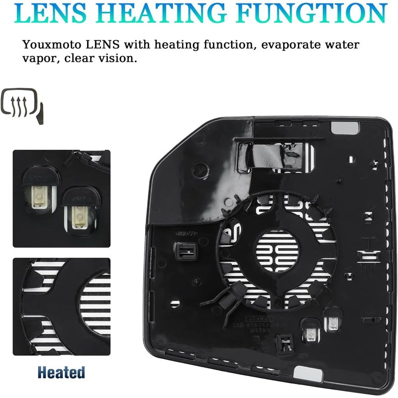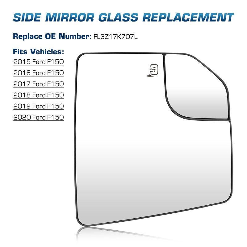 - 🚘【COMPATIBLE WITH】: Youxmoto Driver left side heated mirror glass fits for Ford F150 F-150 2015 2016 2017 2018 2019 2020 side view mirror glass. Note: Without Auto-Dimming, without Bling Spot Detection Function.