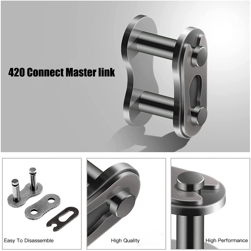 Easy to install, can be used to extend the existing 420 chain, using high-quality materials, fine processing, precision processing, strong, anti-oxidation, durable.