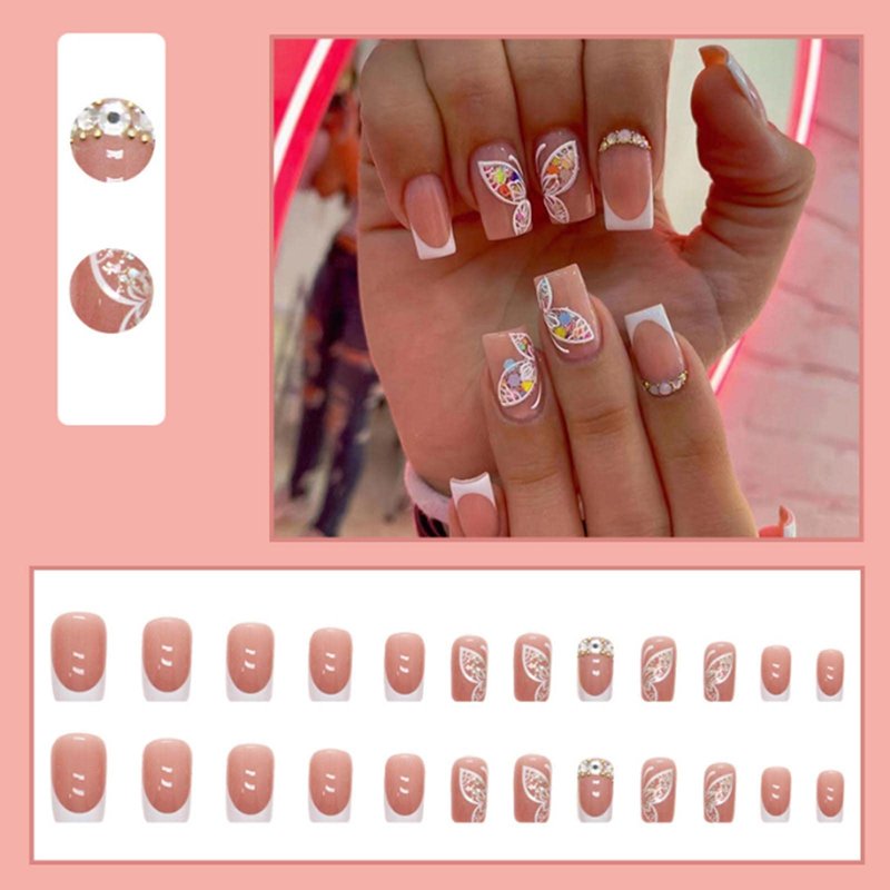 YoYoee French Press on Nails Short Square False Nails Butterfly Fake Nails Full Cover Cute Nails Tips for Women and Girls 24PCS