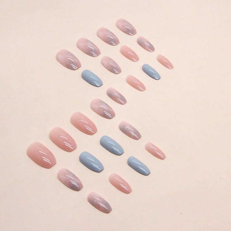 YoYoee Marble Nails Tips Short Coffin False Nails Gradient Press on Nails Full Cover Nude Cute Fake Nails for Women and Girls 24PCS