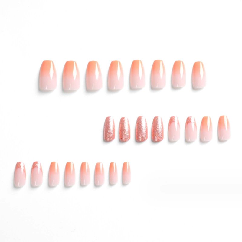 YoYoee Medium Coffin Press on Nails French Cute Gradient False Nails Acrylic Bling Fake Nails Reusable Nails Tips for Women and Girls 24PCS