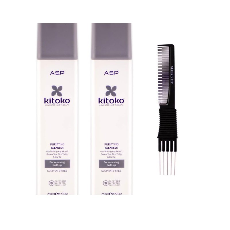 yper Asp Kitoko Purifying Cleanser (8.5 oz) with Teasing Comb Pack of 2, Off White
