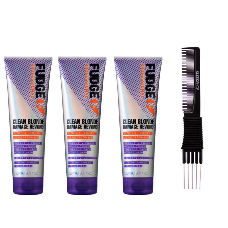 yper Fudge Clean Blonde Damage Rewind Violet Toning Conditioner (8.4 oz) with Teasing Comb Pack of 3