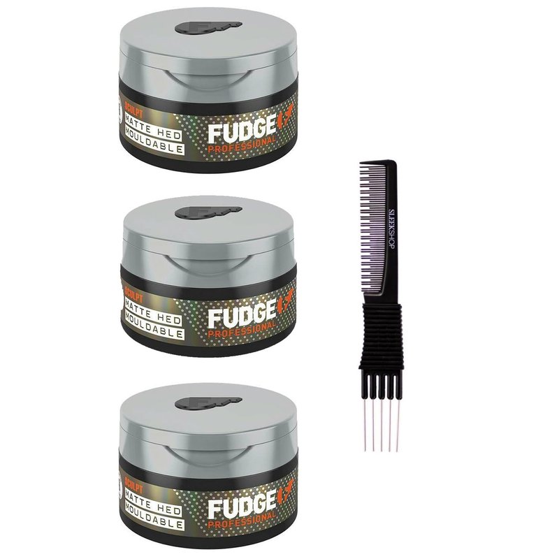 yper Fudge Sculpt Matte Hed Mouldable (2.64 oz) with Teasing Comb Pack of 3